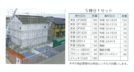 1セット オクトシステム基本部材の住宅5棟分 1ヶ月契約 業者会加入 5万税別